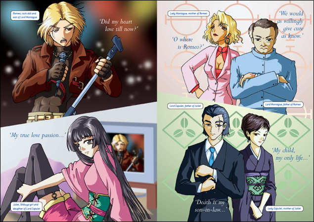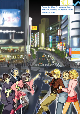 Romeo and Juliet, Shakespeare's most famous love story, unfurls in a dramatic manga setting,
